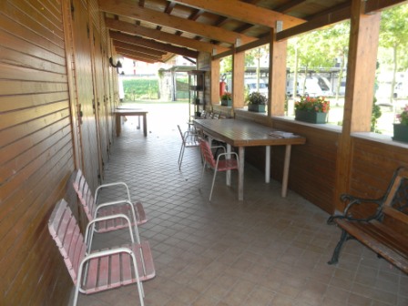 -Tavoli e sedie sotto una veranda.